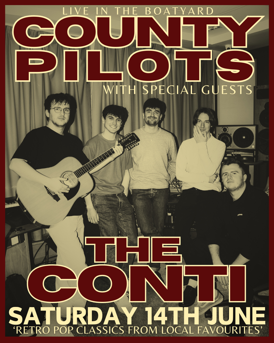 Preston’s own Retro-pop quintet COUNTY PILOTS take to the Boatyard stage on 14th June.