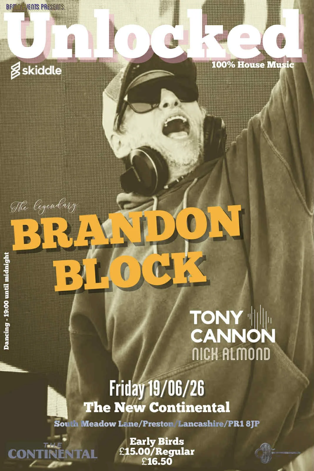 UNLOCKED! Friday 19th June with BRANDON BLOCK and special guest DJs TONY CANNON and NICK ALMOND.